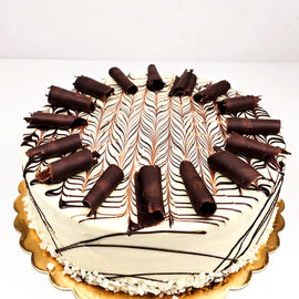 Ванилови пандишпанови блатове, крем сметана, течен шоколад, залята с тъмен шоколад.